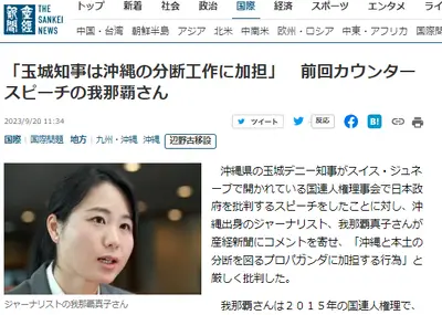 【速報】沖縄ジャーナリスト「玉城知事は中国の日本分断を図るプロパガンダに加担」