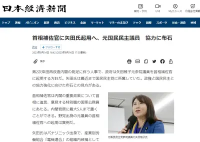【速報】岸田首相、衝撃采配「電機連合(元国民民主)の矢田稚子氏を首相補佐官」界隈が騒ぎまくる