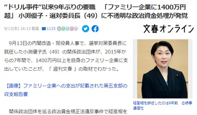 【文春砲】速報 小渕優子・選対委員長(49)に不透明な政治資金処理が発覚