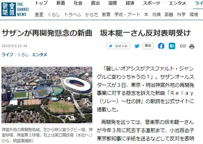サザンオールスターズ、坂本龍一さん反対表明受け「再開発懸念の新曲を公開」