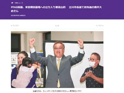 【PFAS問題】立川市長選で初当選の酒井「公約通り、米軍横田基地への立ち入り要請する!多摩地域で発がん性が疑われる有機フッ素化合物(PFAS)の汚染が広がっている」