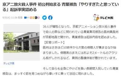 【京アニ放火殺人事件】青葉被告「36人殺害はちょっとやりすぎた」弁護団「裁判長!ここはひとつ無罪でどうでしょう!」