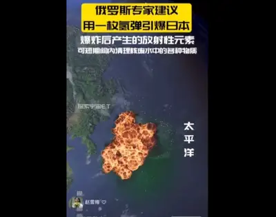 【動画あり】露専門家「日本に水爆を使用すれば核廃水を浄化できる」→中国拡散、何十万人が「即時実行」と賛同