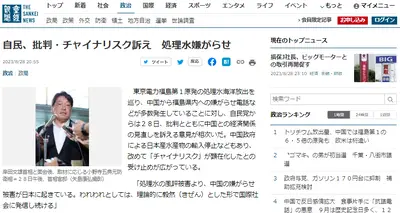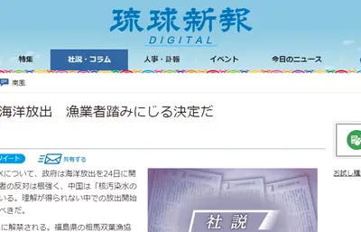 琉球新報「福島第1原発の処理水、中国の理解が得られない中での放出は認められない」