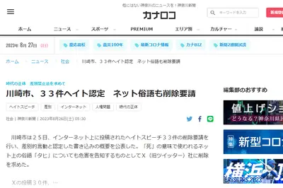 【独裁】川崎市の33件ヘイト認定「タヒ」などネット俗語も削除要請 やりたい放題の言葉狩り状態