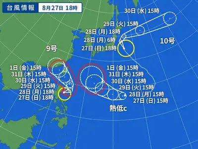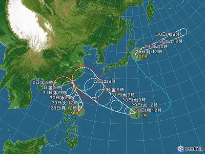 【悲報】台風11号になる予定の熱帯低気圧の進路ヤバい...社会人のみんな頑張ろうな