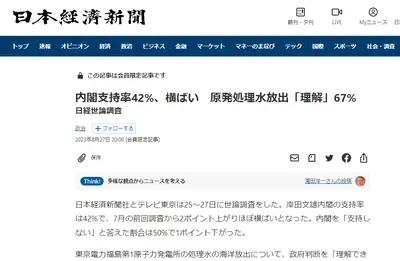 【速報】処理水放出判断、日本国民の総意発表「理解できる」67%「理解できない」25% 放出反対パヨク、大差で負ける