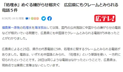 【速報】外務省、日本各地の事業者や在中の日本の関連施設等に対する苦情電話や嫌がらせが多数発生について