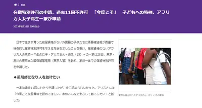 アフリカ人女子高生一家「父親が永住権も有罪無申告で取り消し」その為、12回目の在留特別許可申請に挑む模様wwww