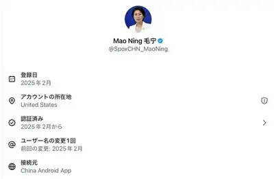 中国の毛報道官、Xの投稿でVPNを利用し、発信元が「アメリカ合衆国」になっていることが判明w