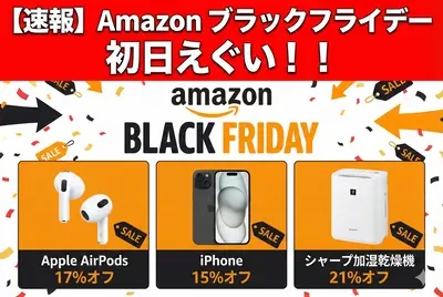 【速報】Amazonブラックフライデー 初日ぶっ壊れる「Apple AirPods17%オフ」「iPhone15%オフ」「シャープ加湿乾燥機21%オフ」!!