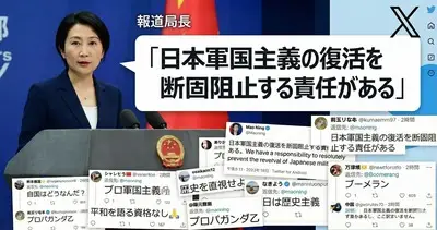 【速報】中国・毛寧報道局長、Xに外相コメ「日本軍国主義の復活を断固阻止する責任がある」掲載もツッコミ殺到
