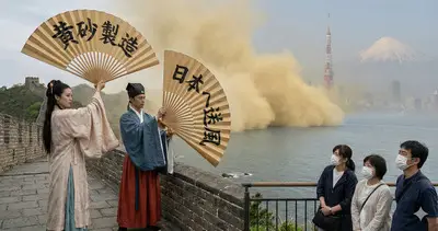 【速報】中国『さて、日本全土を汚染してやりますか・・・』季節外れの11月に黄砂襲来、チャイナ服が巨大うちわで扇いでんのか?