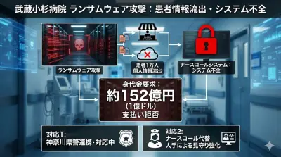 【速報】武蔵小杉病院にランサムウェア攻撃「個人情報を暗号化した身代金は152億円だ」 病院は支払い拒否「毅然とした態度で臨む」患者1万人の個人情報漏洩