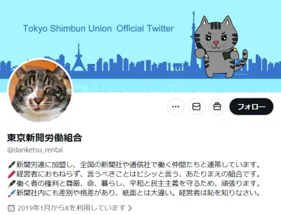 【速報】東京新聞労働組合「高市政治、いまの自民党政治を許したら、行き着く先は戦争である」