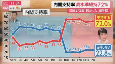 高市内閣支持率72%「政権発足以降、5カ月連続で7割台の高水準を維持」