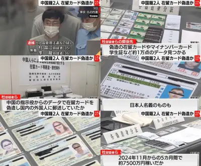 【速報】逮捕された中国籍の2人、偽造の在留カードやマイナンバーカードなどがバカ売れ約1万点が世に放たれ7500万円を荒稼ぎ