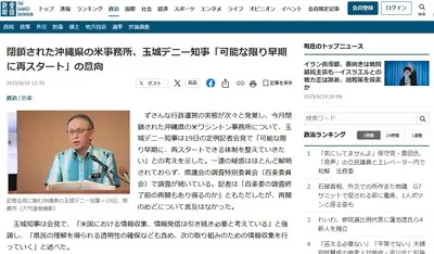 【速報】閉鎖された沖縄県の米事務所、玉城デニー知事「可能な限り早期に再スタート」の意向wwwww
