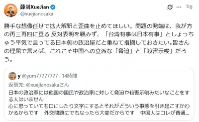 【速報】中国総領事のX投稿、日本政府が動いた模様「首相殺害予告は看過できず国際問題に発展へ」