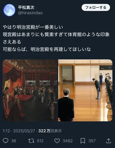 【画像】X民「皇居・宮殿、あまりにも質素すぎて体育館みたい。明治宮殿に建て直すべき」