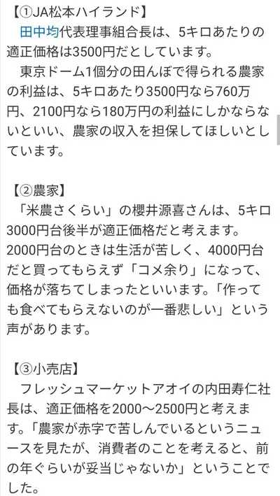 米5キロの適正価格を聞いてみた→JA「3500円」農家「3000円台後半」専門家「1000円でええよ」