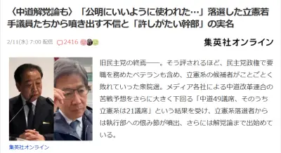 【速報】中革連、予想通り醜い内紛「公明にいいように使われた…」「あまりにおかしく許しがたく耐えがたい」