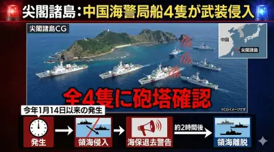 【ママ戦争止めてこいよ】中国船4隻が領海侵入 いずれも砲を搭載