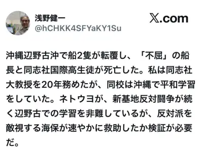【辺野古転覆】保護者「乗組員は救助された子供たちに微笑みながら「特製クッキーとコーヒー、こんな飲む、ここでしか飲めないよ」この発言はどう思いますか」