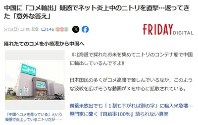 【速報】ニトリが中国に「コメ輸出」疑惑でネット炎上中