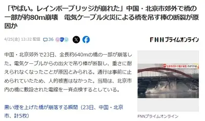 【速報】震度0、中国のレインボーブリッジが崩壊「やばい。レインボーブリッジが崩れた」
