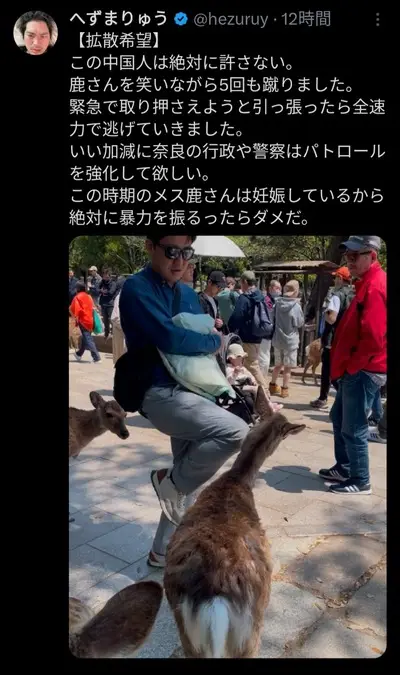 【奈良鹿ボコボコ】中国観光客『俺様は中国人民である、蹴り殺してやろうか』自制が効かなくなり動物虐待連発!!