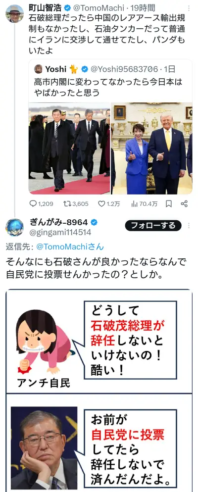 進撃の巨人(実写映画)脚本の人「石破総理だったら中国のレアアース輸出規制もなかったし石油も通せてたしパンダもいた」