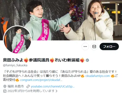 【動画】れいわ奥田ふみよ議員、スカートを履く両氏に「高市総理と片山財務大臣のふくらはぎから妖気を感じる。ビックリした」