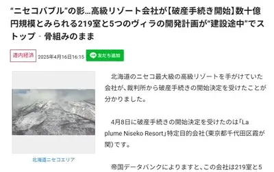 【はじまったか】ニセコのアジア系資本高級リゾート会社が破産手続き開始 建設費未払いで工事ストップ中国化へ