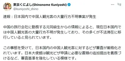 【速報】日本国内で中国人観光客の大量行方不明事案が発生→