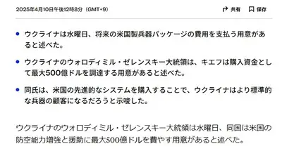 トランプ大統領「終戦しろ。タカるだけの国がよ」 ゼレンスキー大統領「じゃあ500億ドル分の兵器買いますよ」 トランプ「えっ」