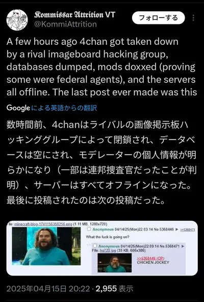 【緊急】米国匿名掲示板4chan、攻撃を受けて強制閉鎖「運営の個人情報流出で一部は連邦捜査官と判明」管理人は西村ひろゆき