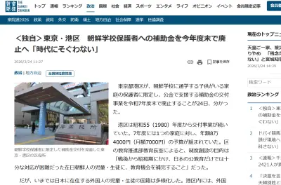 【東京・港区】月7000円の朝鮮学校保護者への補助金廃止、「外国人学校保護者補助金」に名称変更で実質拡大 はあ?