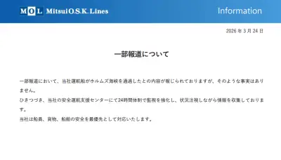 【速報】 商船三井 「一部報道において、当社の超大型原油タンカーがホルムズ海峡を通過したとの報道は事実ではない」ブルームバーグの報道を否定