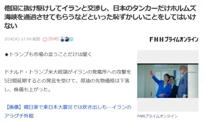 【フジテレビ】他国に抜け駆けしてイランと交渉し「日本だけタンカーを通して」という恥ずかしいことをしてはいけない