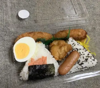 【画像】おにぎり2個と唐揚げとウインナーが入った謎の弁当
