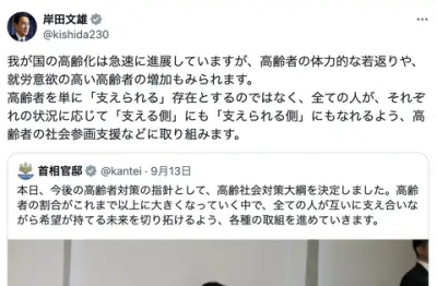 【悲報】岸田総理「我が国の高齢化は急速に進展しているが、高齢者の体力的な若返りや、就労意欲の高い高齢者の増加もみられる」