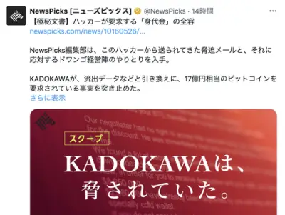 【悲報】KADOKAWAさん、今月末までにハッカーに身代金要求されている模様