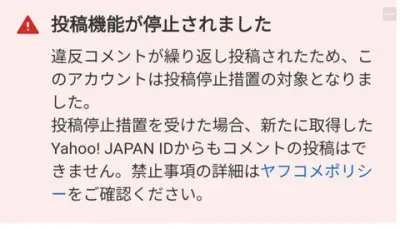 【悲報】ワイ、ヤフコメから追放されてしまう