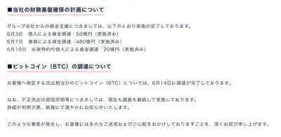 【朗報】DMMビットコイン、盗まれた4500BTCをすでに調達したと発表