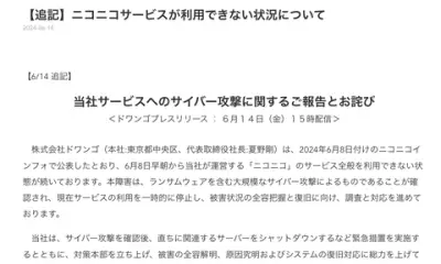 【悲報】ニコニコ動画、復旧まで1ヶ月以上かかる模様