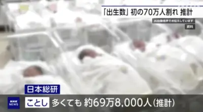 【悲報】今年1年間の出生数、初の70万人割れへ。終わりだよこの国