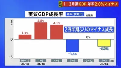 【悲報】1~3月期の実質GDP年率2.0%減。2四半期ぶりマイナス成長