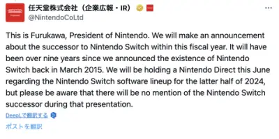 【朗報】ニンテンドースイッチ2、発売決定。公式が発表