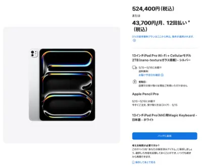 新型iPad Pro「11インチ168,800円、13インチ218,800円」←これ